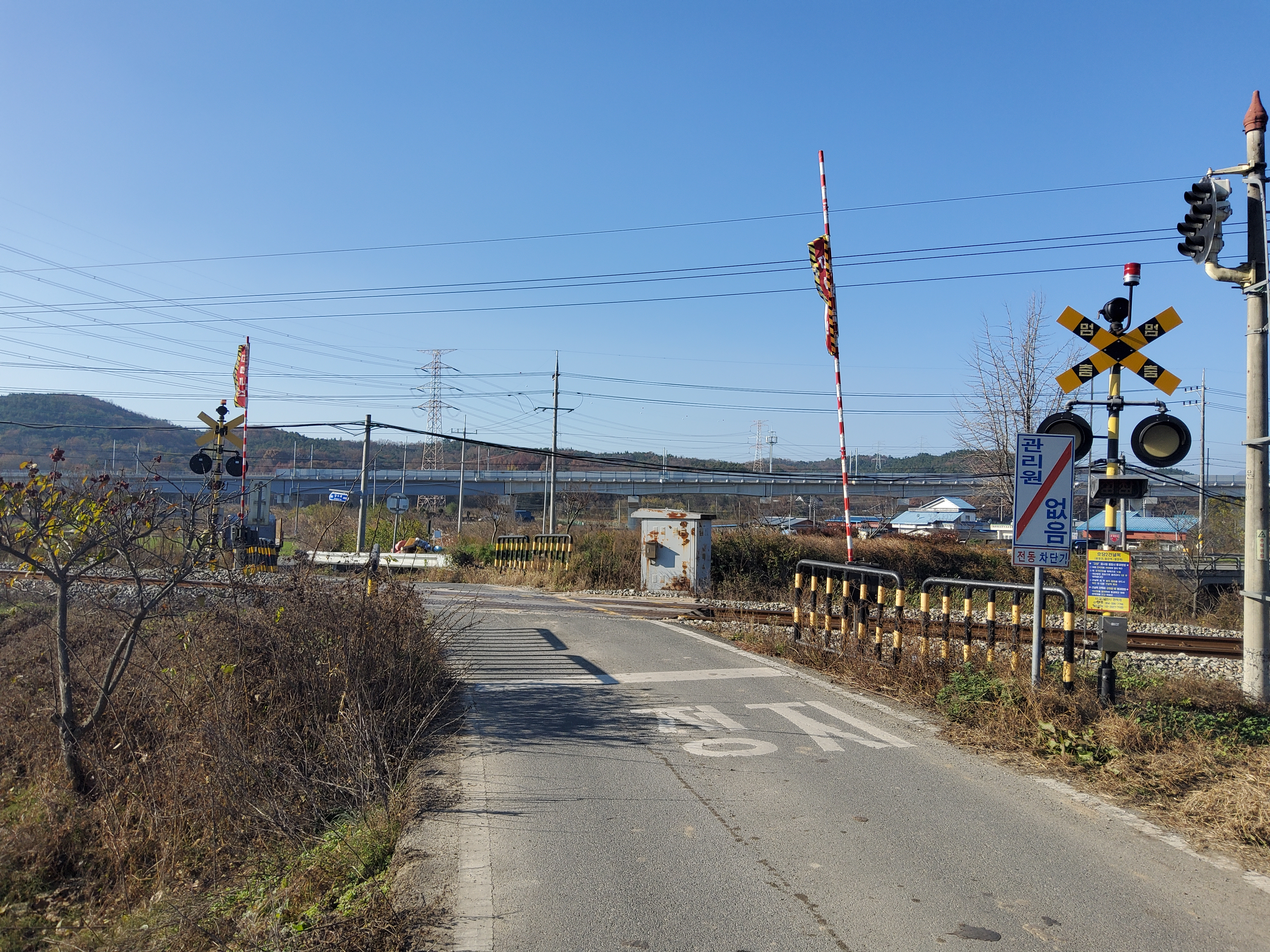 왕복 4차선 도로가 이 건널목에서만 2차선으로 줄어듭니다. 아마도 선로이설 후 추가 공사를 하겠죠