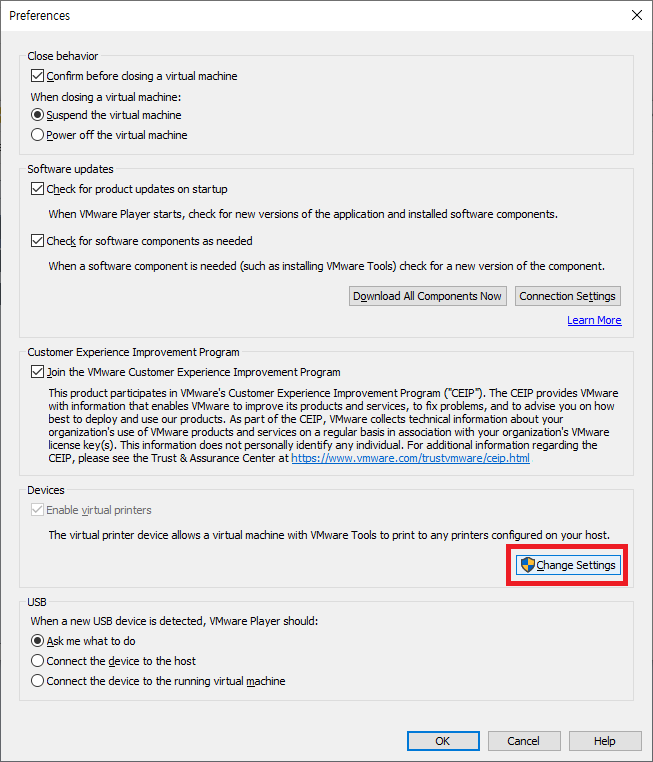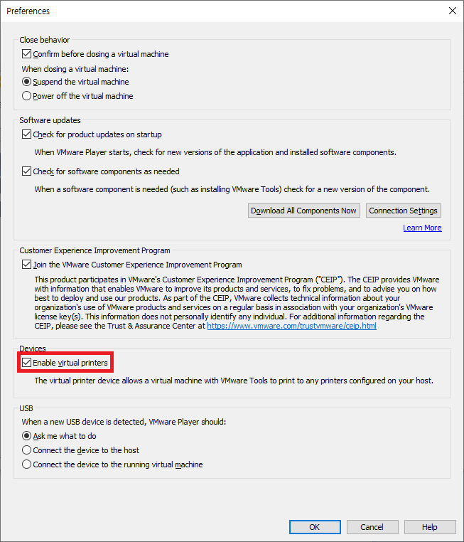 VMware 가상머신에서 실제 프린터를 연결하는 방법