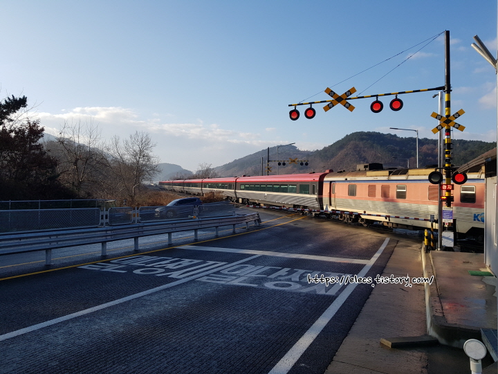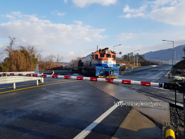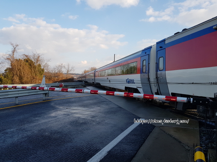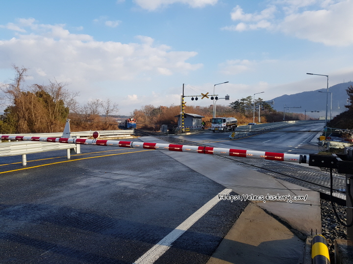 그런데 이러한 국도 위에 기차가 지나가는 곳이 있습니다! 장항선 무궁화호를 타고 가던 도중 기차가 4차선 도로를 뚫고 지나가는 광경을 보았던 기억이 있어 그 곳을 직접 찾아가 보았습니다.