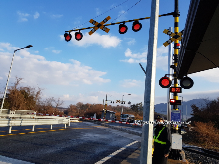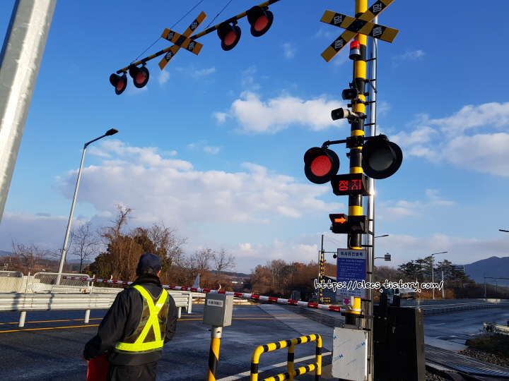 이 이색적인 광경도 내년 1월 5일이면 장항선 철길 이설과 함께 사라집니다. 잠시동안이었지만 장래에는 자동차들이 멈춤 없이 이 도로를 달릴 것입니다. 비록 기차는 이 건널목에서 멈추지만 새로 이설될 도로에서 힘차게 달릴 것입니다.