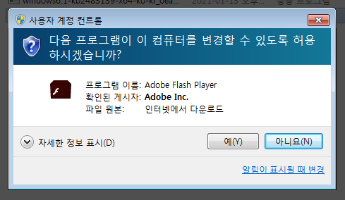 여기까지 진행하셨으면 다음으로 Windows 7에 플래시 플레이어 32.0.0.363 설치해 보도록 하겠습니다.