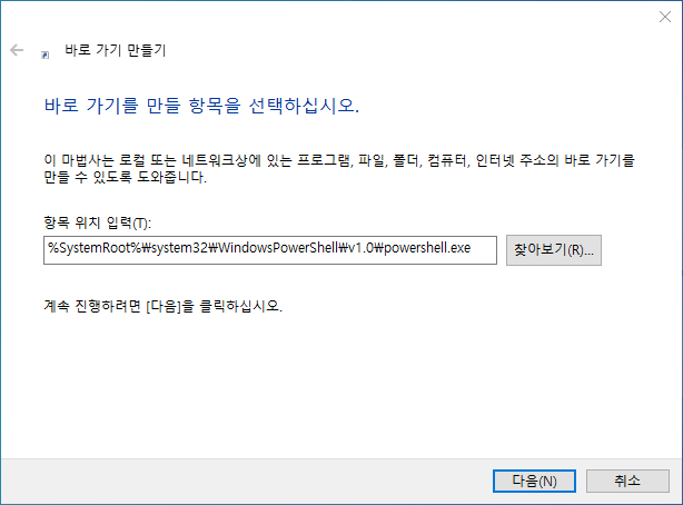 Windows Powershell 명령어를 바로가기로 구현하기
