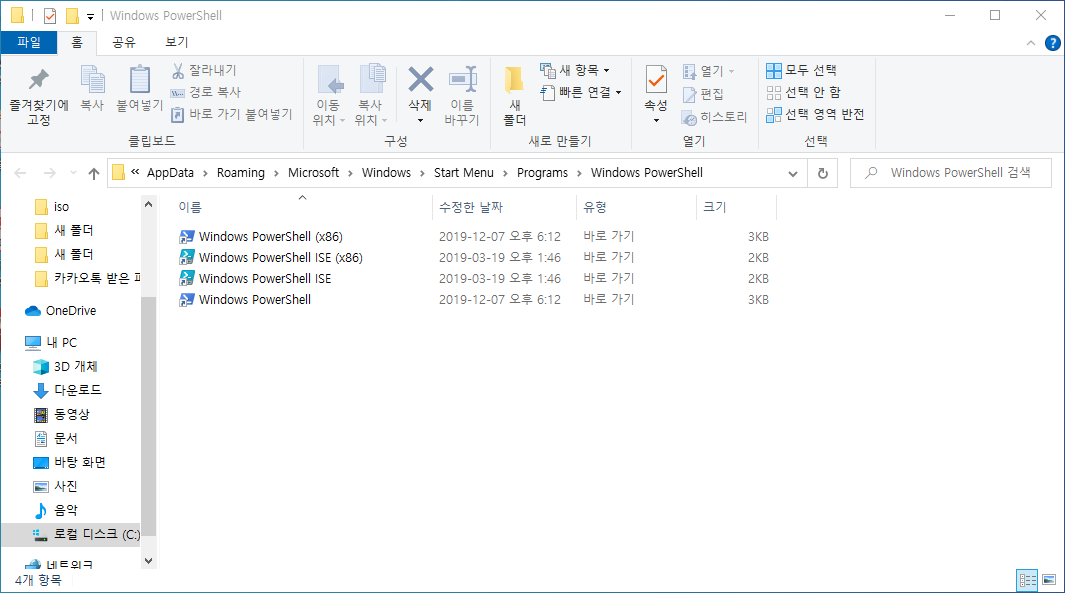 위와 같은 PowerShell 바로가기 아이콘들을 볼 수 있습니다. 이 중 제일 아래의 것을 복사하여 원하는 위치에 붙여넣기를 해주면 됩니다.