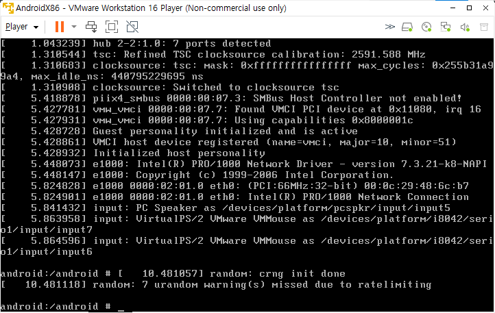 먼저 가상머신으로 안드로이도 x86을 실행시켜준 후 grub에서 Debug mode로 접근합니다.