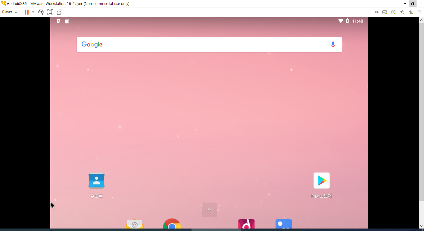 저의 경우 해상도를 'video=1280x720'으로 설정하였습니다. 여기까지 진행하신 다음 안드로이드를 실행해보면 아래와 같이 화면이 잘리지 않고 해상도가 조절된 화면으로 나타나는 것을 확인하실 수 있습니다.