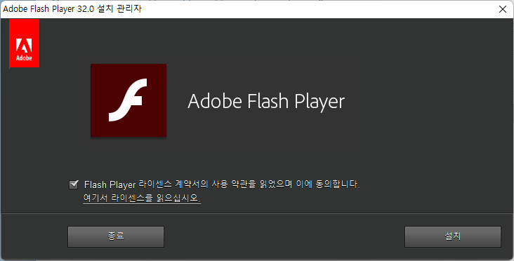 4. 이제 플래시 플레이어를 설치합니다.