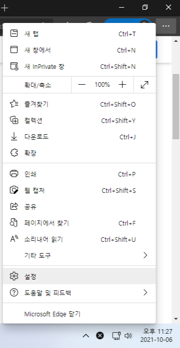 7. Microsoft Edge 브라우저를 실행한 다음 메뉴를 연 다음 '설정'을 클릭합니다.