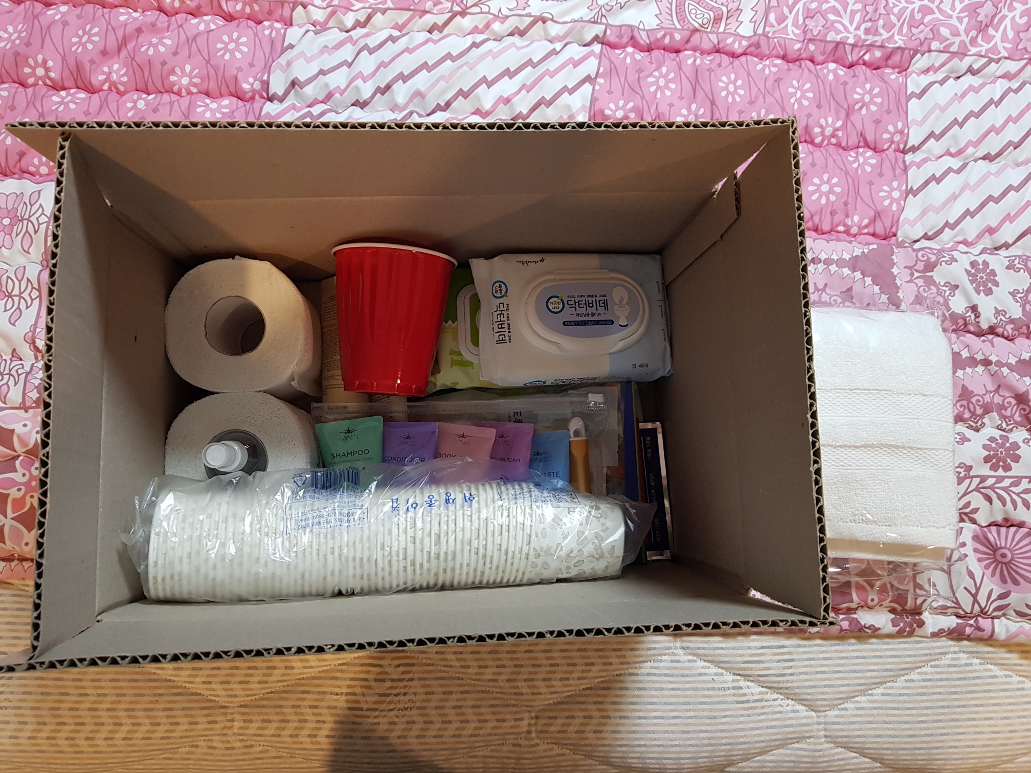 급하게 입소 준비하느라 짐을 부랴부랴 챙겨왔는데 생각보다 생활치료센터에서 제공해주는 키트에서 생필품들 구성이 잘 되어있어 굳이 짐을 많이 싸올 필요는 없어 보입니다.(굳이 필요하다면 실내에서 편하게 입고 다닐 수 있는 옷 정도?) 심지어 격리 기간동안 방 안에서만 지내기 때문에 여분의 옷 한 벌과 약간의 속옷 정도만 있으면 되는 듯 합니다.