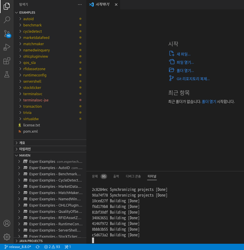 복합 이벤트 처리 라이브러리인 esper를 Visual Studio code에서 실행해보도록 합니다. 먼저 esper 공식사이트 혹은 공식 github 사이트를 통해 esper 라이브러리를 다운로드 받습니다.
