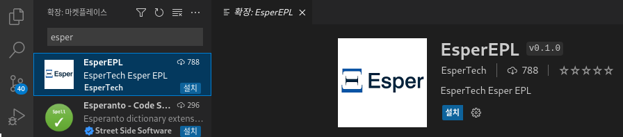 이어서 EsperEPL 확장 프로그램을 추가로 설치합니다.