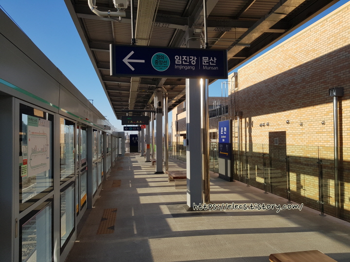 문산 - 임진강 구간을 운행하는 전동열차에 탑승합니다.