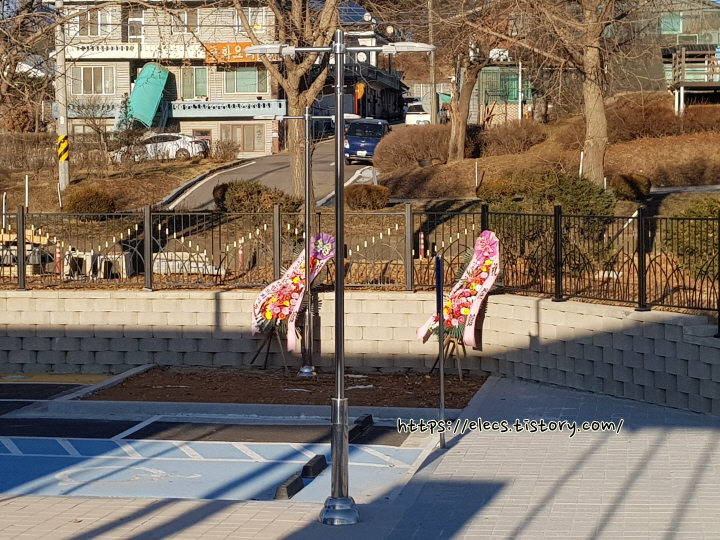 나름 동네의 큰 이벤트이다 보니 마을 사람들이 화환을 갖다두었습니다.