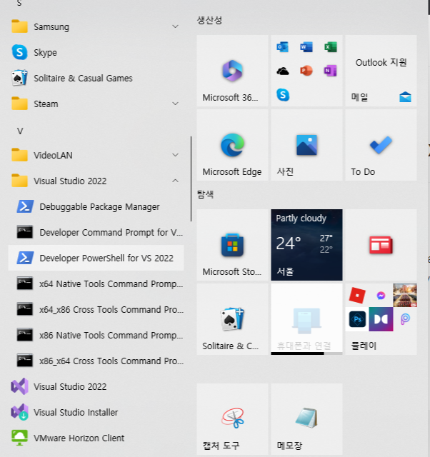 물론 Cmd 환경에서 64비트 환경을 개발하는 방법이 있으나 제가 PowerShell이 더 익숙하다보니 Visual Studio에서 기본 제공하는 환경에서는 개발이 어려운 상황입니다.