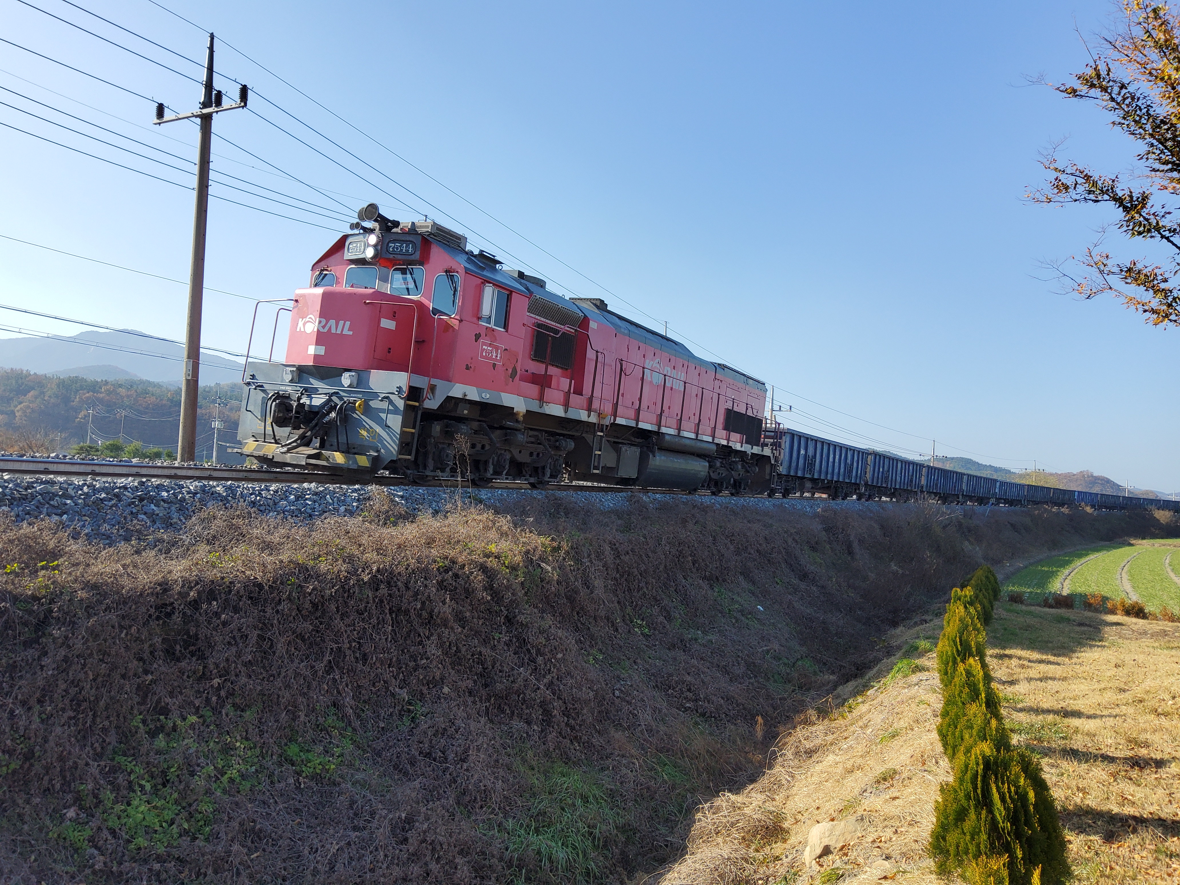 운좋게 도착하자마자 열차가 지나가는 것을 사진으로 남기는군요.