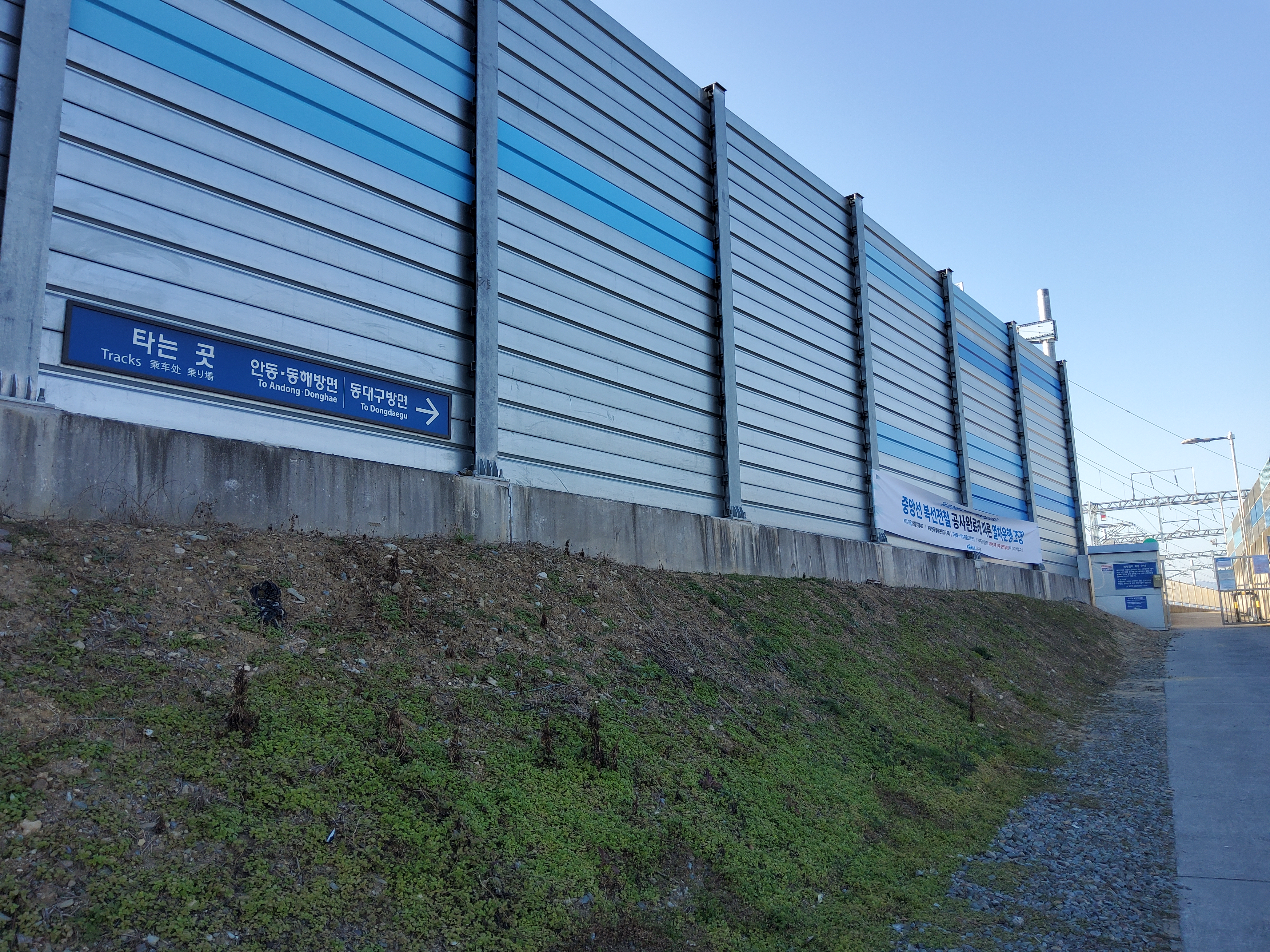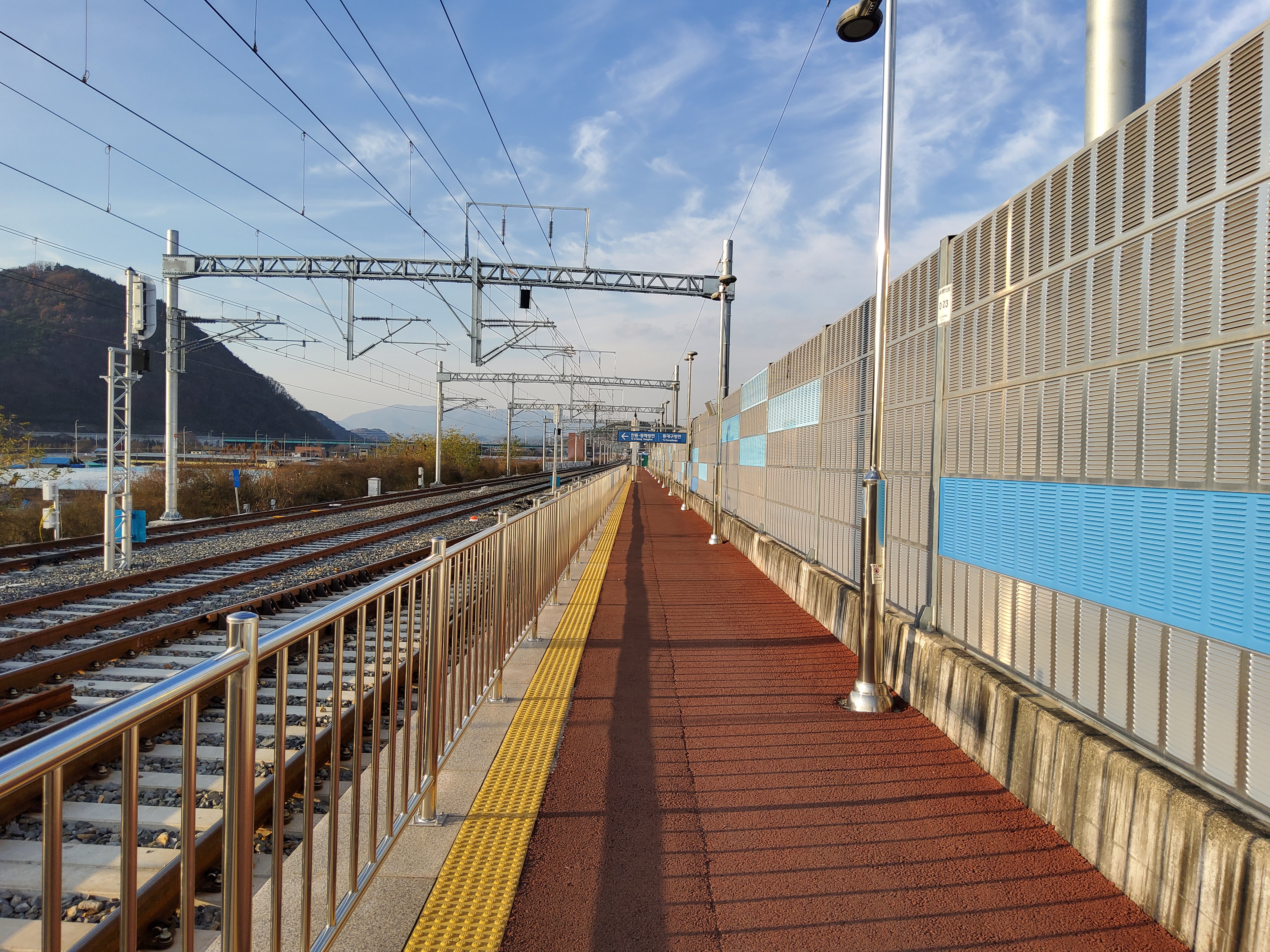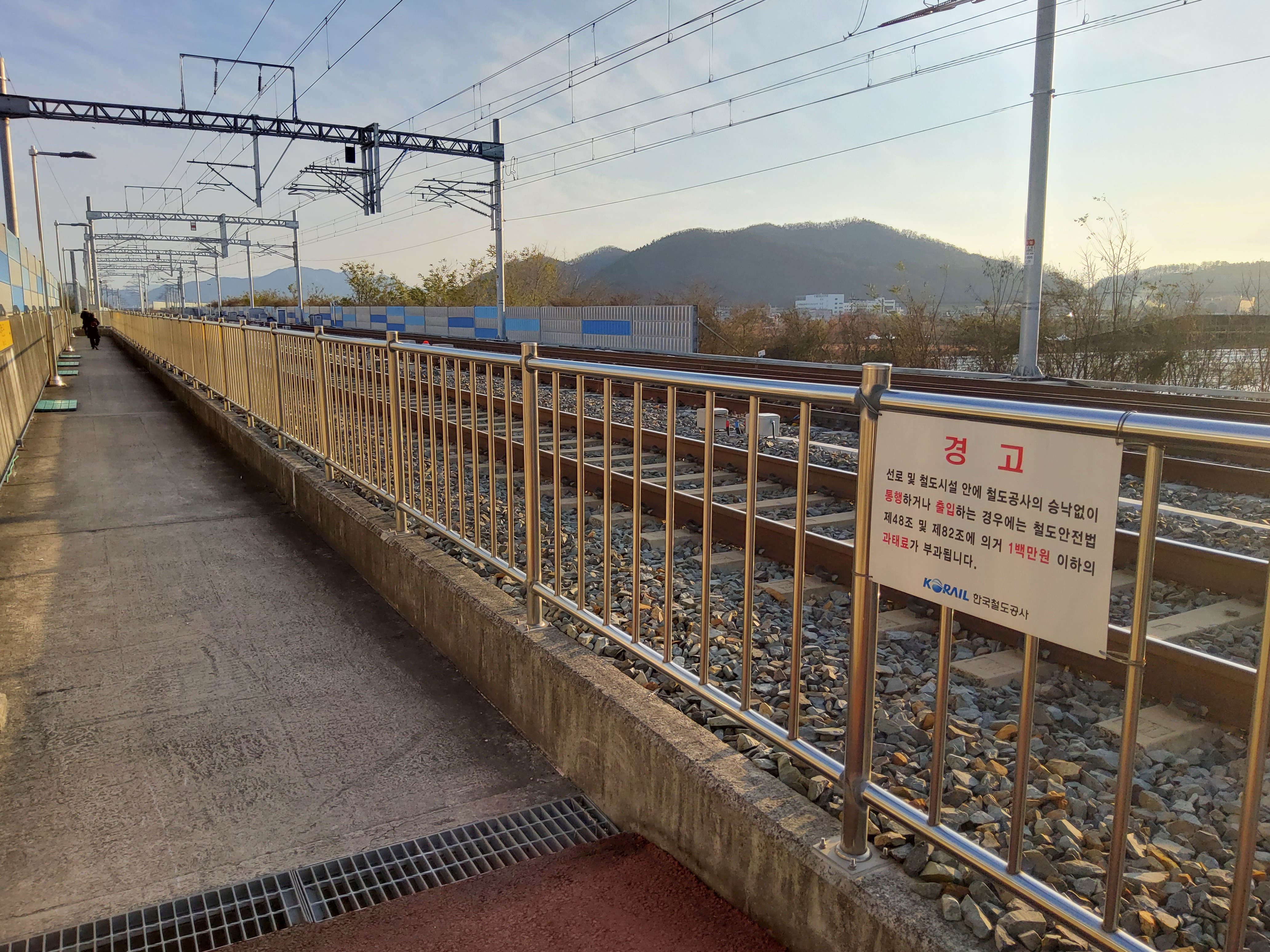 선로 옆에 차후 하행선이 될 선로쪽에만 플랫폼을 만들어 둔 모습입니다.