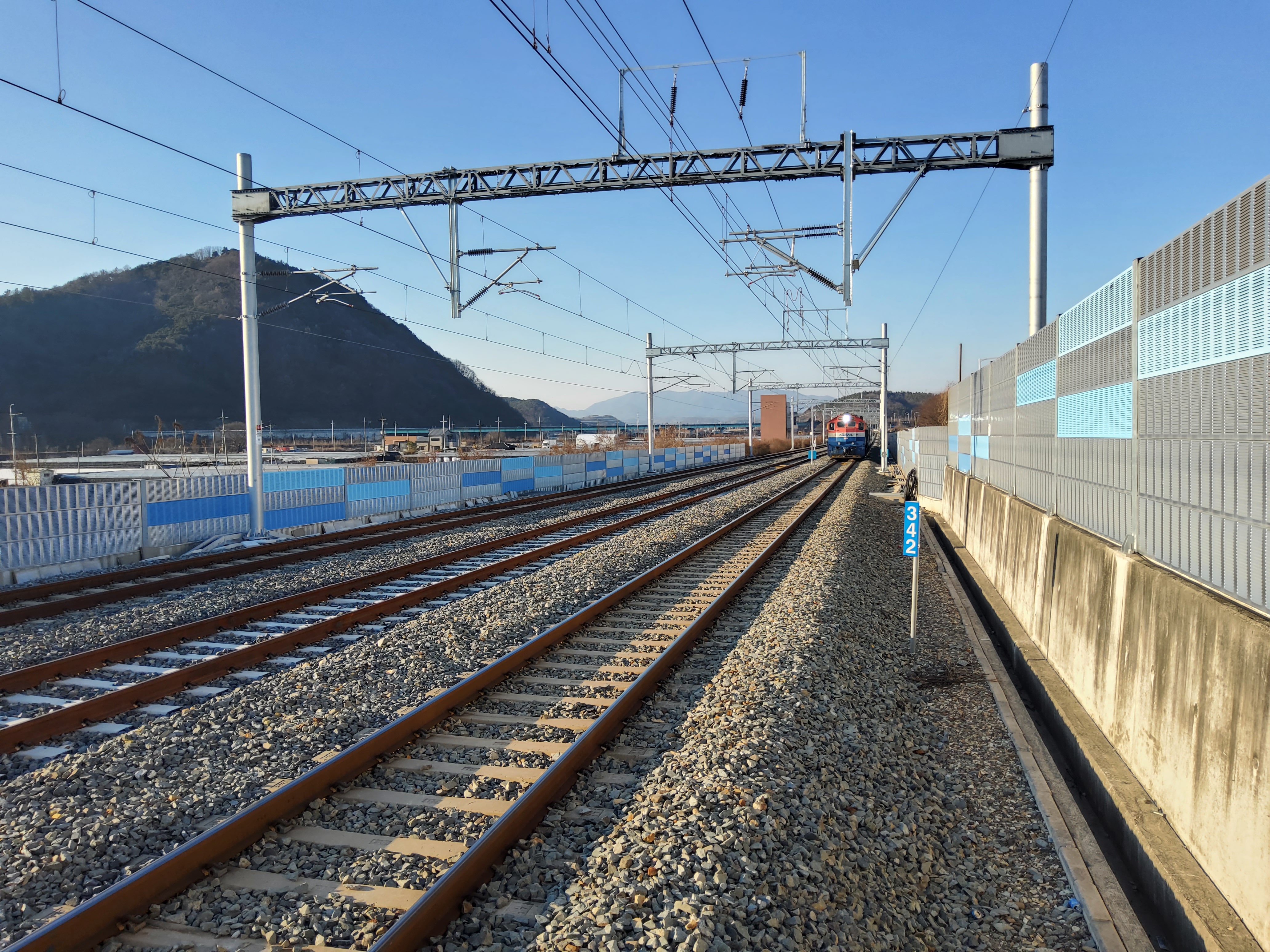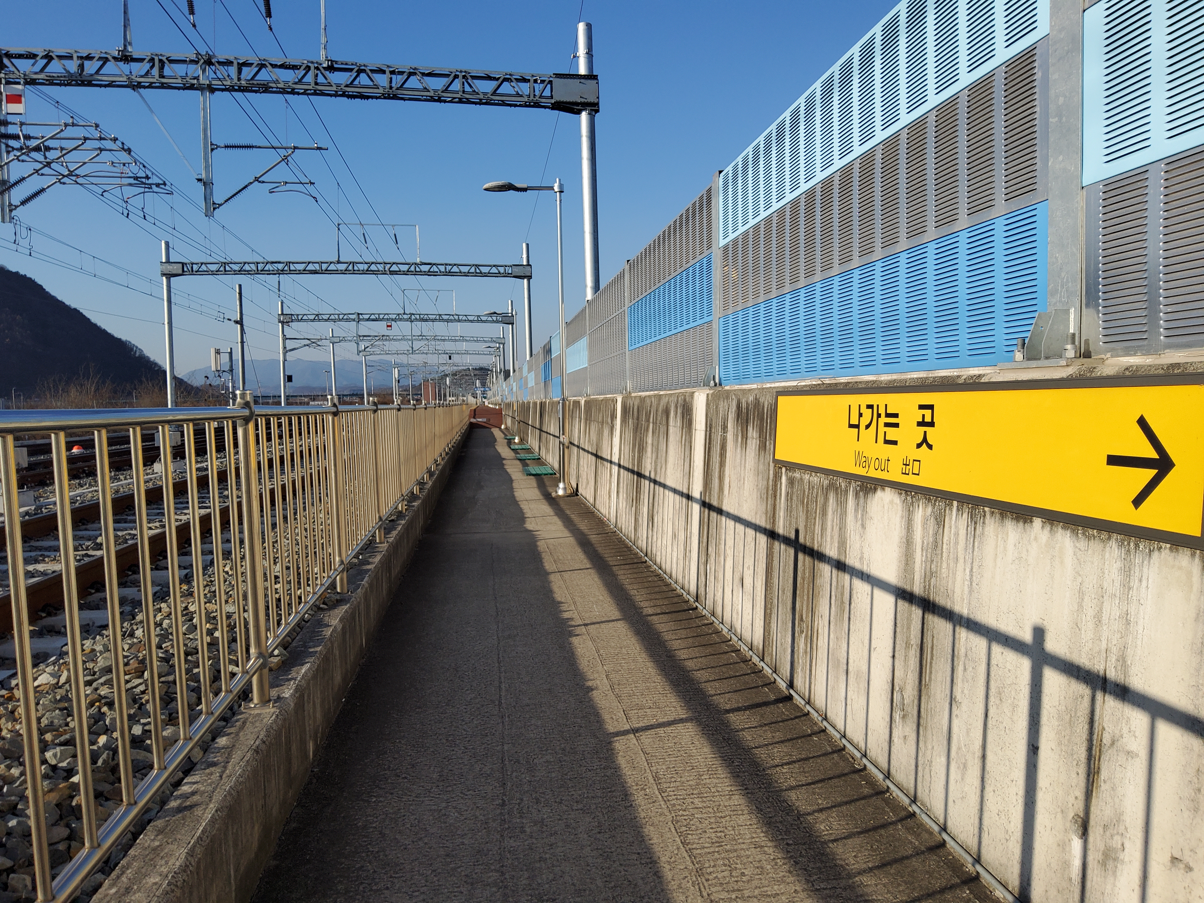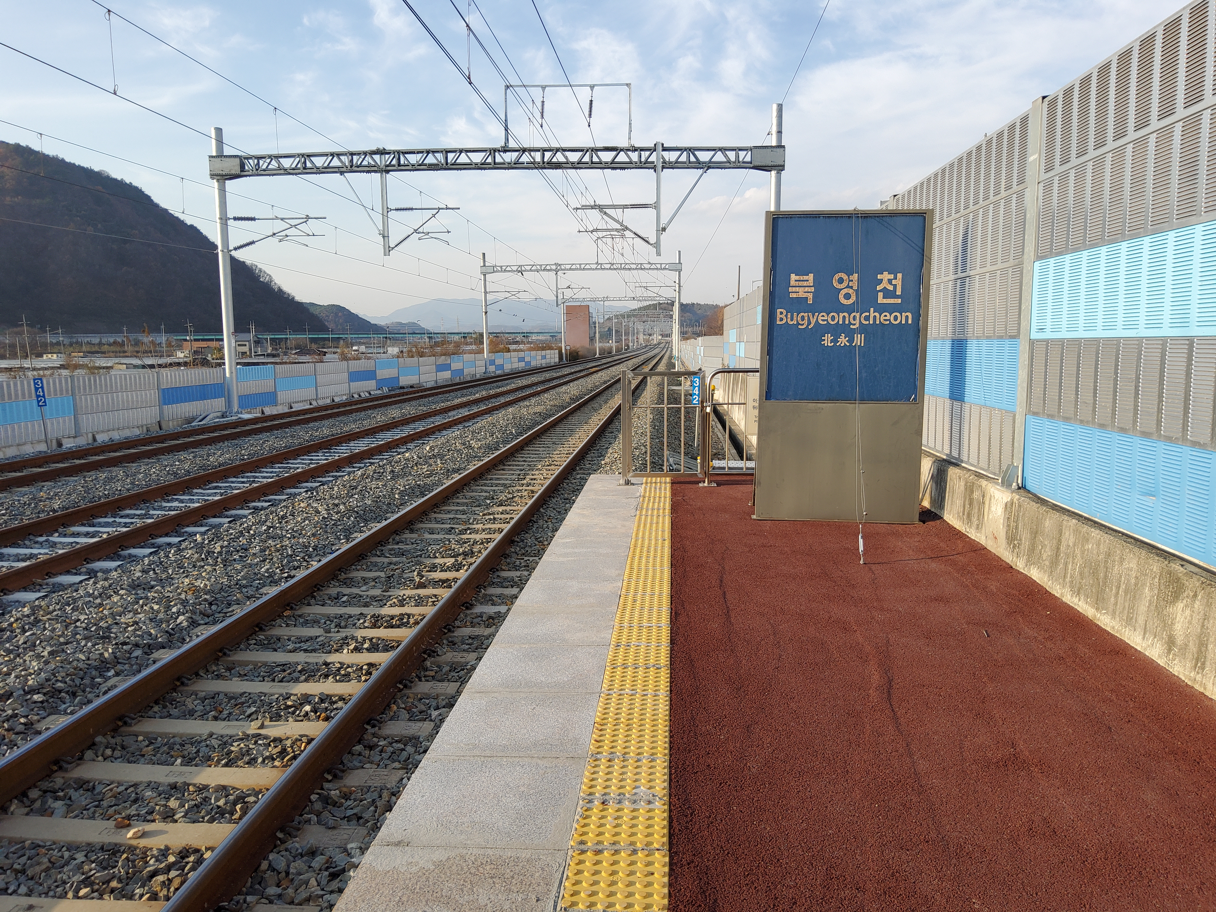 선로 옆에 차후 하행선이 될 선로쪽에만 플랫폼을 만들어 둔 모습입니다.
