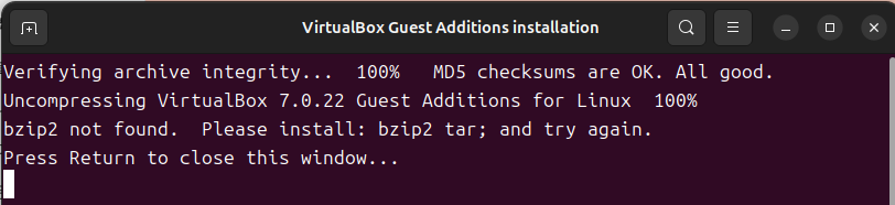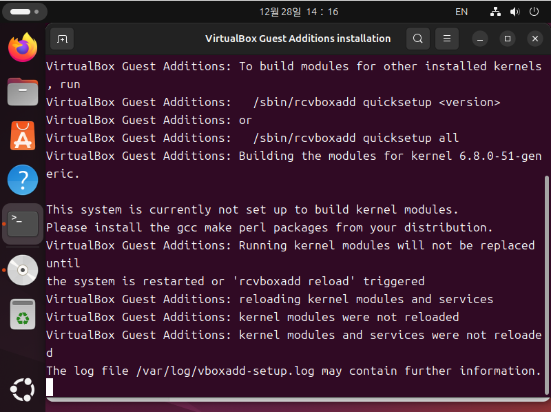아래와 같은 화면이 나온다면 VirtualBox Guest Addition이 정상적으로 설치되고 있는 것입니다.