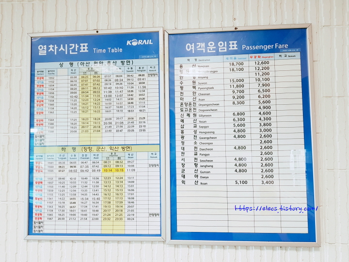 장항선의 열차 배차를 보면 무궁화 반 새마을 반이다 보니 거의 1시간 마다 열차가 있다고 보면 됩니다.