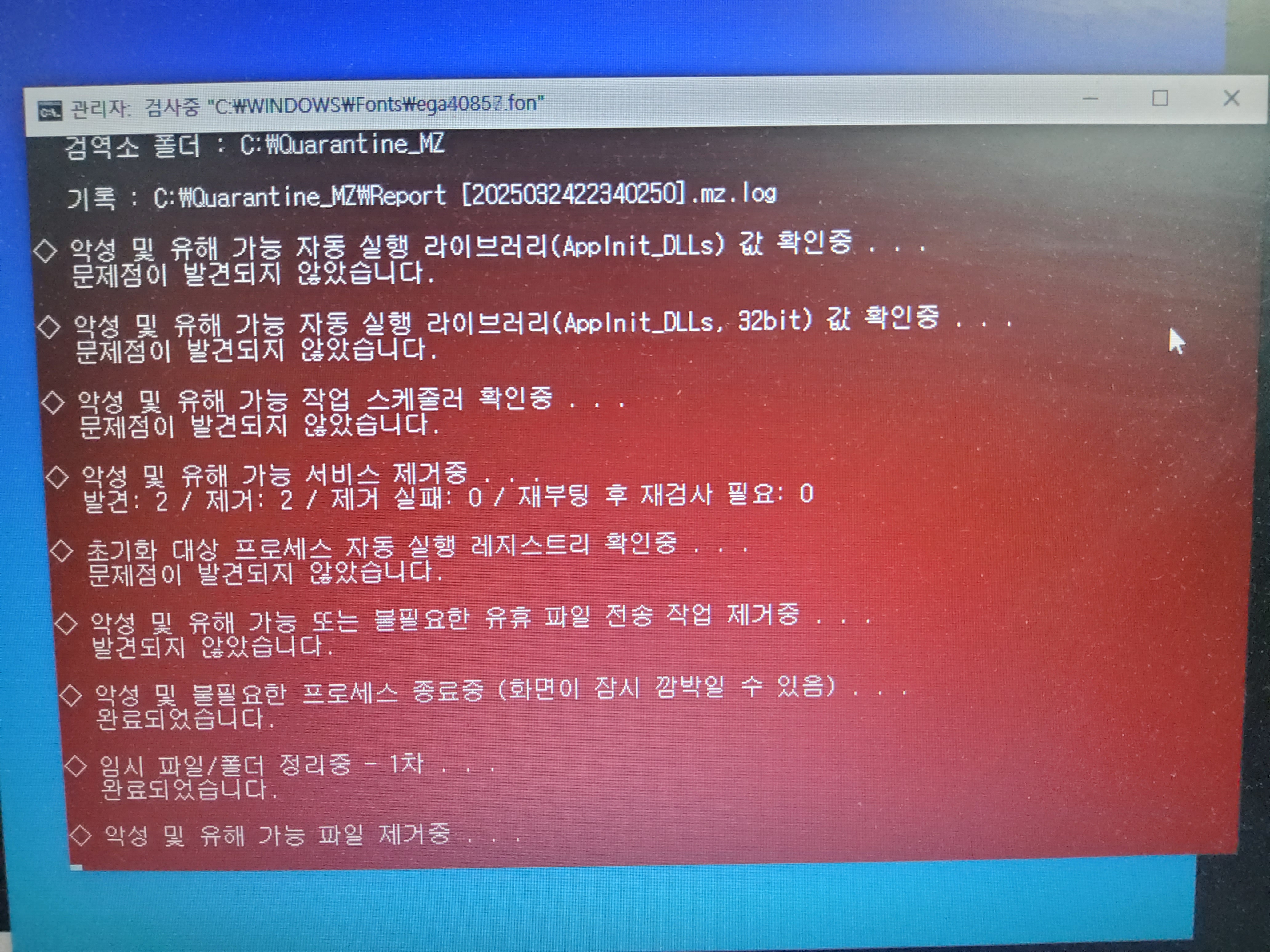 아래와 같은 화면이 나오면 검사가 완료된 것입니다.