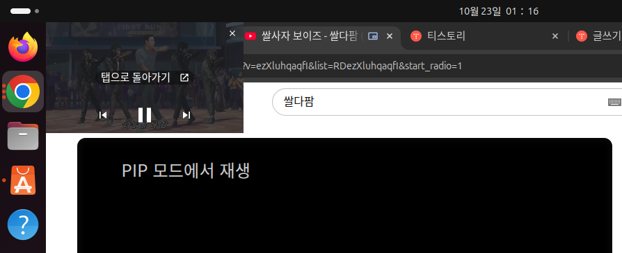 - 2025.10.28 Ubuntu에서 Youtube 동영상 PIP모드에서 다른 창에 의해 화면이 가려질 때 해결방법